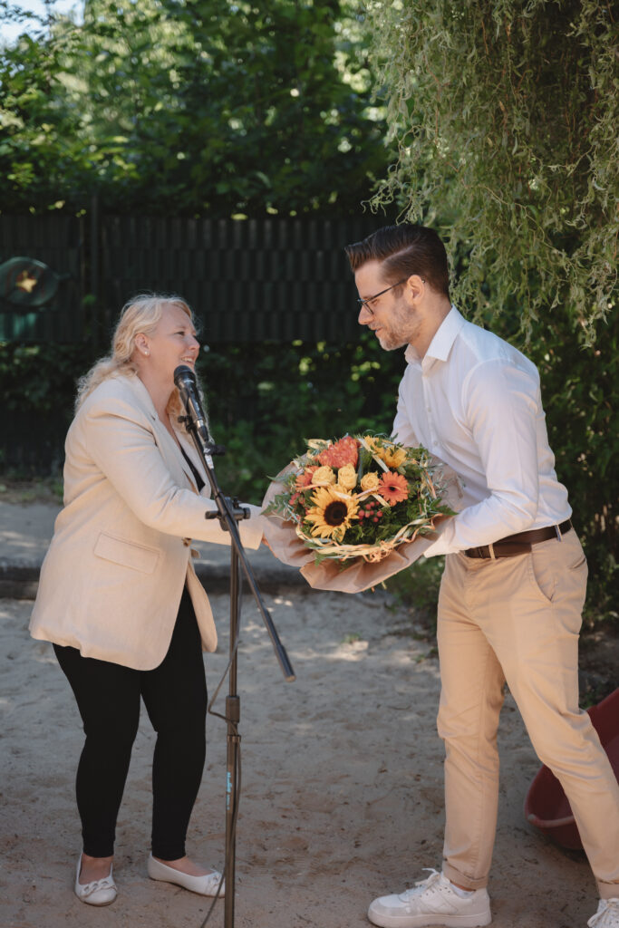 Unsere Feierlichkeiten begannen mit einem herzlichen Willkommen durch unsere Leitung, sowie einer festlichen Ansprache unseres Oberbürgermeister Herr Felix Heinrichs, welcher uns mit seiner Wertschätzung für die pädagogische Arbeit, sowie das Engagement aller Gründungs- und Vorstandsmitglieder begeisterte.